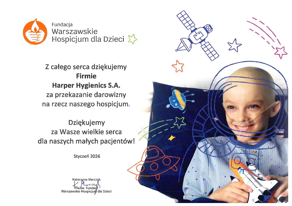 We were proud to take part in a charity collection organized for the Warsaw Children’s Hospice Foundation (Fundacja Warszawskie Hospicjum dla Dzieci) by donating wet wipes for incurably ill children to support their daily care.