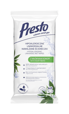![]() | Presto hypoallergenic universal wet wipes with hemp fibers | Ingredients |